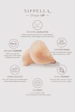 Küçük ve orta boy göğüsler için ideal olan bu yapışkanlı sütyenlerimiz, görünmez kaplama teknolojisi ile tüm gün boyunca güvenli ve konforlu bir kullanım sunarak göğüslerinizi kaldırır, destekler ve dolgun bir dekolte oluşturur. Böylece sırtı açık ve askısız tüm kıyafetlerinizi güvenle giyebilirsiniz ve güzelliğinize mükemmellik katarsınız. NIPPELLA Shape_UP, suya ve tere dayanıklıdır, Yıkandıktan sonra 20’den fazla kez kullanılabilir, kıyafetlerinizde sütyen izi bırakmadan kusursuz bir kapatıcılık sağlayan plastik içermeyen INVISIFEEL™ teknolojisine sahip mat Medikal sınıf silikondan üretilmiştir.