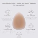 Suya dayanıklı yapısı sayesinde denizde ya da havuzda yüzerken bile sabit kalır. Hafif, sağlıklı ve görünmez bir göğüs pedi alternatifi sunar. Hipoalerjenik silikon malzeme ile üretilmiştir. Standart 8 cm ölçüsüyle A–C cup arası göğüs tiplerine rahatlıkla uyum sağlar. Ten rengine en yakın görünüm için iki farklı cilt tonu mevcuttur: Crème (açık) ve Caramel (buğday). Her ürün özel taşıma kutusuyla birlikte gelir, böylece seyahatlerde güvenle yanında taşıyabilirsin. Uygulama sonrası 5 saniye bastırarak sabitleyebilir, kullanım sonrası ılık sabunlu suyla yıkayıp kurutarak tekrar kullanabilirsin.