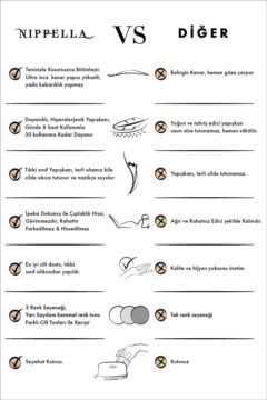 - Nippellameme ucukapatıcıları ultra ince yapısı ile meme ucunu örterek göğüs üzerinde doğal bircilt görünümü ve hissi yaratır.