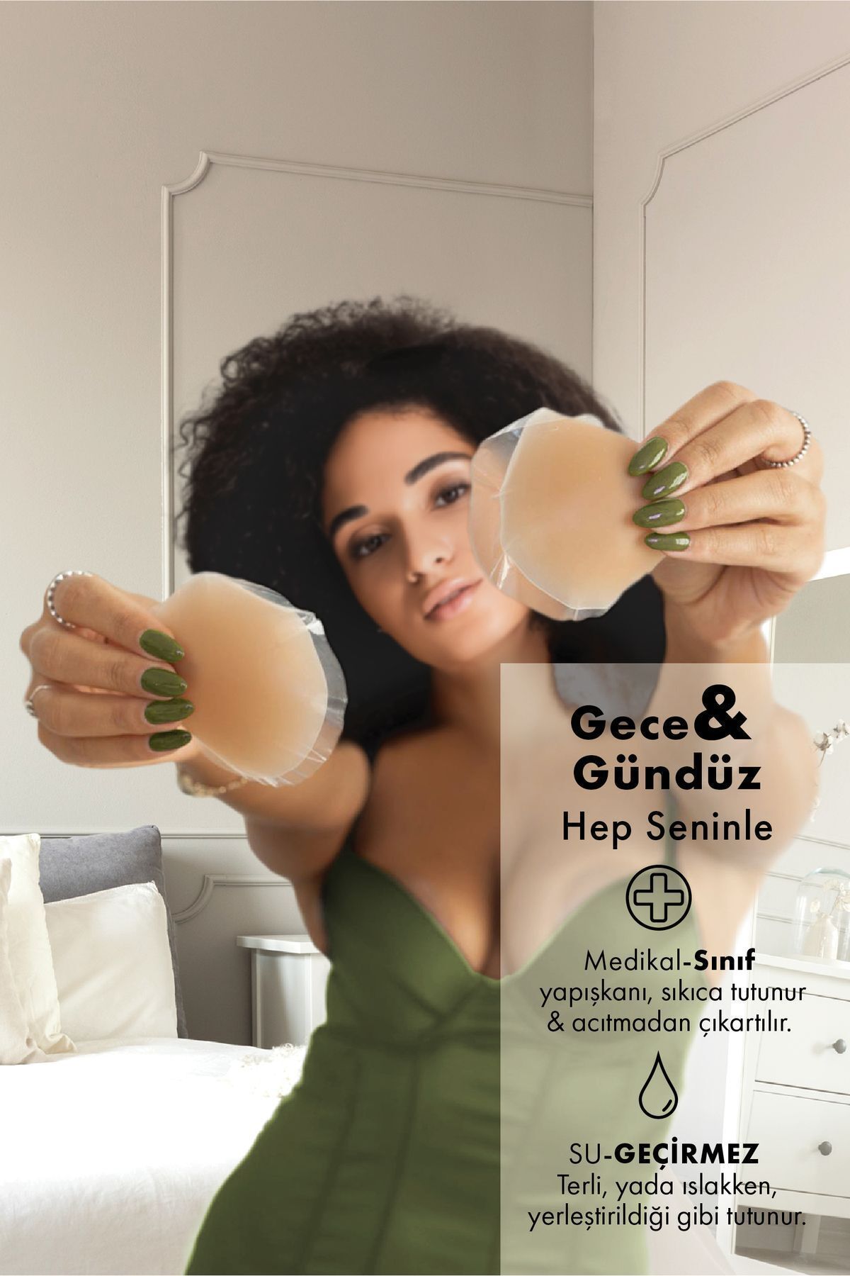- Su geçirmez silikon memeucu kapatıcıları, katılacağınız hangi etkinlik olursa olsun, giyeceğinizkıyafet ne olursa olsun, göğsünüz üzerinde ultra ince yapısı sayesinde kendinihiç belli etmeden güvenle durur ve meme uçlarınızı güvenle gizler.